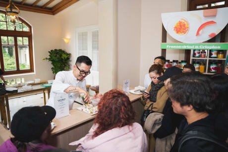 Chef Justin Lee showcased a beautiful assortment of Spanish tapas using various Sosa products. The booth highlighted the diverse range of Sosa products, offering insights into the applications through Chef Justin Lee's masterful creations.