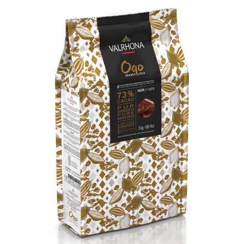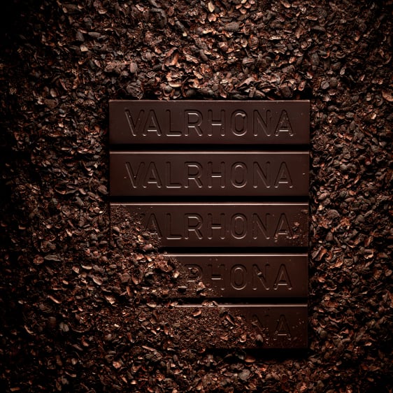 Valrhona is throwing the chocolate-making rulebook out the window with Oqo, the first dark couverture made with whole unhulled cocoa beans. Its naturally crispy texture, intense flavor and authentically raw marbled look open the way for all kinds of vibrant sensations.