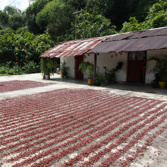 In Venezuela, the unique flavor of ARAGUANI comes from a prime example of rich land-sea soils found where the plantations in the Andean foothills meet the sea swept coastline of the Caribbean. Starting in the 1990s, Valrhona set out to protect and foster the diversity of Venezuelan cacaos through efforts like acquiring the El Pedregal plantation in 1992 to save an endangered cacao variety called Porcelana. ARAGUANI is the product of Valrhona's efforts to restore and blend ancient bean varieties originating from many different locales in the country's highly acclaimed northwestern growing region.