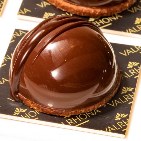 Reheat the glaze to 37°- 38°C, mix thoroughly and remove as much air as possible. Glaze.