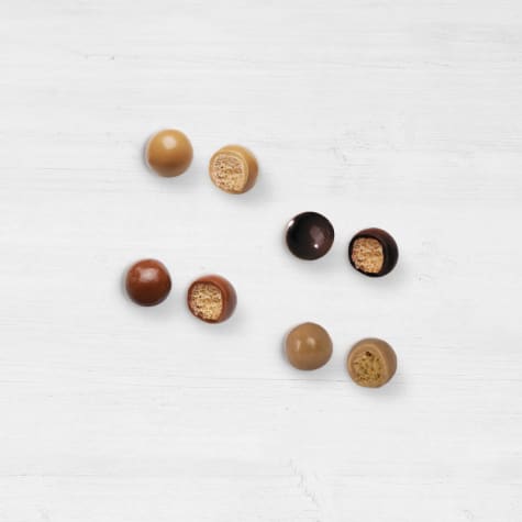 Valrhona Croustibilles chocolate candies, a crispy cereal heart coated in chocolate for a gourmet snack
