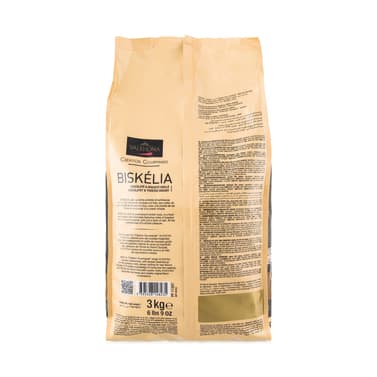 After introducing Caramélia in 2008 with its velvety milky caramel notes used in innovative much-loved creations, Valrhona takes us on a new decadent journey of the senses in milk chocolates. Soft caramels, toasted biscuit, a pinch of salt and chocolate. Valrhona's newest arrival takes us back to our childhood. Creamy and indulgent Biskélia is pure milk chocolate, yet another masterpiece from the expert Valrhona chocolatiers. One look at its warm bright color brings on nostalgia for the satisfying treats of childhood. Long-forgotten sensations and memories of delicious treats come rushing back, our senses reliving those memories. A splendid milk chocolate that brings genuine joy and takes us back in time on an unforgettable journey.