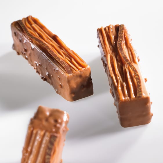 After introducing Caramélia in 2008 with its velvety milky caramel notes used in innovative much-loved creations, Valrhona takes us on a new decadent journey of the senses in milk chocolates. Soft caramels, toasted biscuit, a pinch of salt and chocolate. Valrhona's newest arrival takes us back to our childhood. Creamy and indulgent Biskélia is pure milk chocolate, yet another masterpiece from the expert Valrhona chocolatiers. One look at its warm bright color brings on nostalgia for the satisfying treats of childhood. Long-forgotten sensations and memories of delicious treats come rushing back, our senses reliving those memories. A splendid milk chocolate that brings genuine joy and takes us back in time on an unforgettable journey.